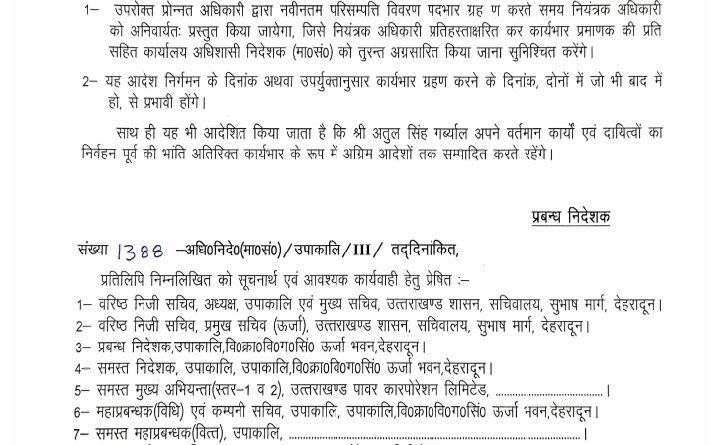 ऊर्जा निगम ने इस अभियंता को दी एग्जीक्यूटिव डायरेक्टर की जिम्मेदारी,देखिए आदेश