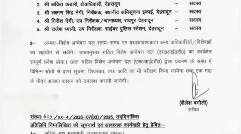 Read MoreUKSSSC Paper Leak: जांच के लिए एसआईटी गठित देहरादून। उत्तराखण्ड अधीनस्थ सेवा चयन आयोग द्वारा आयोजित स्नातक स्तरीय प्रतियोगिता परीक्षा,