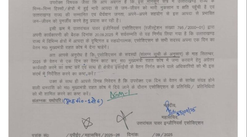 वेल डन UPCL- चीफ, अधीक्षण, अधिशासी और सहायक अभियंताओं ने अपने एक दिन का वेतन दिया मुख्यमंत्री राहत कोष में