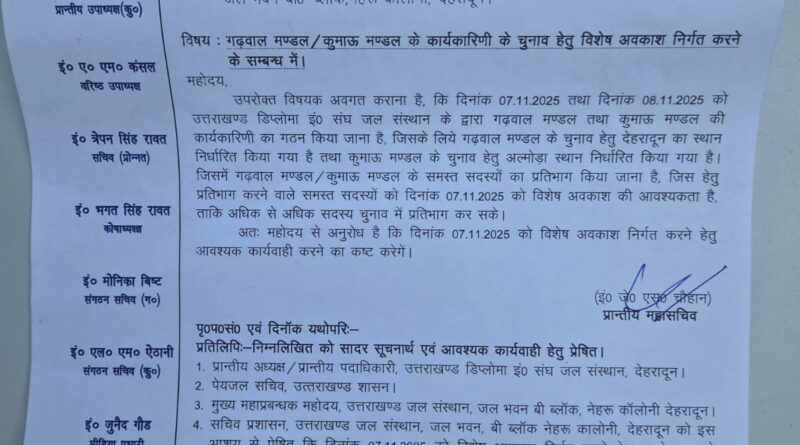 Read Moreसेवा में, मुख्य महाप्रबन्धक उत्तराखण्ड जल संस्थान, जल भवन बी०-ब्लॉक, नेहरू कालोनी, देहरादून। विषय : गढ़वाल मण्डल / कुमाऊ मण्डल