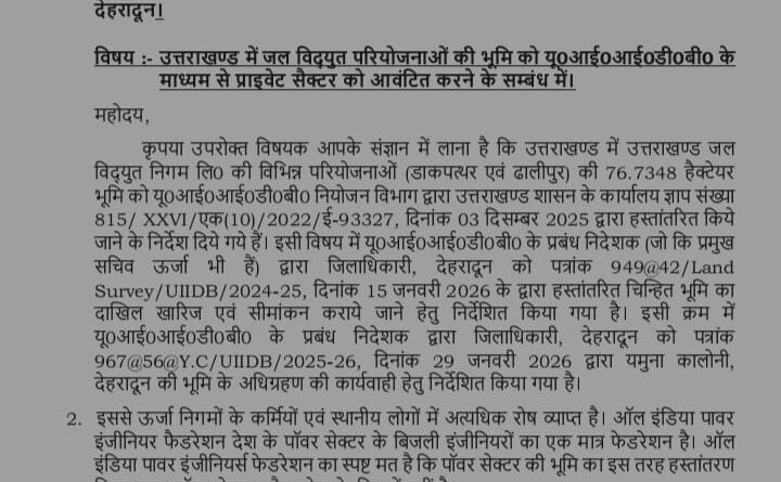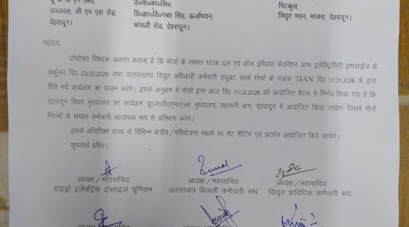 Read Moreदेहरादून।उत्तराखंड विद्युत अधिकारी कर्मचारी संयुक्त संघर्ष मोर्चा की एक आवश्यक बैठक आज दिनांक 10 फरवरी 2026 को उत्तराखंड पावर कॉरपोरेशन