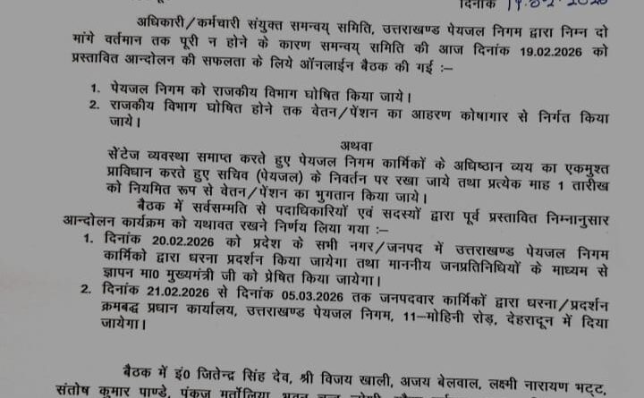 Read Moreअधिकारी / कर्मचारी संयुक्त समन्वय समिति उत्तराखण्ड पेयजल निगम ने इस दिन से आंदोलन का ऐलान प्रदेश के सभी नगर
