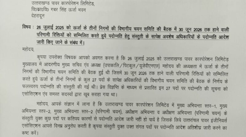 Read Moreसेवा में, प्रबन्ध निदेशक, उत्तराखण्ड पावर कारपोरेशन लिमिटेड, वि०का०वि० गबर सिंह ऊर्जा भवन देहरादून विषय: 26 जुलाई 2025 को ऊर्जा