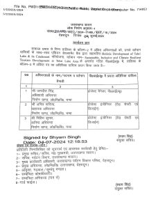 तत्काल प्रभाव से निम्न तालिका के कॉलम 2 में अंकित अभियन्ताओं को, उनके वर्तमान दायित्वों के साथ-साथ एशियन डेवलपमेंट बैंक द्वारा सहायतित Holistic Development of Tehri Lake & its Catchment परियोजना, वर्तमान नाम- Sustainable, Inclusive and Climate Resilient Tourism Development at Tehri Lake Area के अन्तर्गत गठित पी०आई०यू० में, तालिका के कॉलम-3 में अंकित पद का अतिरिक्त दायित्व प्रदान किया जाता है:-
