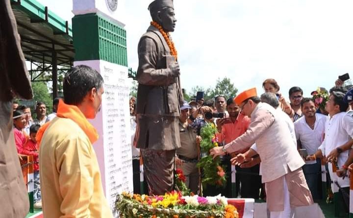 अल्मोड़ा।मुख्यमंत्री पुष्कर सिंह धामी ने शनिवार जनपद अल्मोड़ा की तहसील जैंती के धामदेव में सालम क्रांति दिवस के अवसर पर शहीद स्मारक पर पुष्प चक्र अर्पित कर शहीद नर सिंह एवं टीका सिंह को श्रद्धांजलि दी। स्वतंत्रता सेनानी नर सिंह और टीका सिंह ने अंग्रेजों से लड़ते हुए 25 अगस्त 1942 को इस स्थान पर अपना बलिदान दिया था।