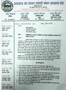 उत्तराखण्ड जल संस्थान, कर्मचारी संगठन ने मुख्य महाप्रबंधक को लिखा पत्र,की ये मांग