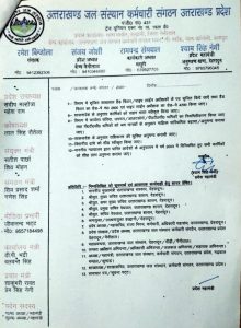 उत्तराखण्ड जल संस्थान में नियोजित जल संस्थान कर्मचारियों की प्रमुख मांगों के सम्बन्ध में मांग पत्र।
