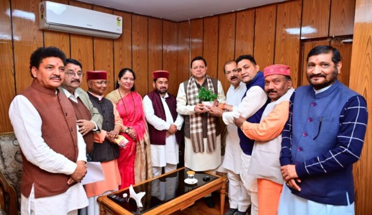 मुख्यमंत्री पुष्कर सिंह धामी से विधानसभा परिसर में विधानसभा बजट सत्र में उत्तराखण्ड (उत्तर प्रदेश जमींदारी विनाश और भूमि व्यवस्था अधिनियम, 1950) (संशोधन) विधेयक, 2025 सर्व सहमति से पारित होने पर विधायक उमेश शर्मा काऊ, महंत दिलीप रावत, प्रमोद नैनवाल, श्रीमती रेणु बिष्ट, सुरेश चौहान, राम सिंह कैड़ा , महेश जीना , राजकुमार , अनिल नौटियाल, सहित विभिन्न विधायकों ने भेंट कर इस ऐतिहासिक कार्य के लिए मुख्यमंत्री का आभार व्यक्त किया।