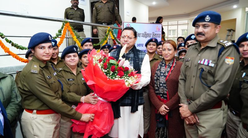 अंतरराष्ट्रीय महिला दिवस के अवसर पर पुलिस की मातृशक्ति बहनों ने सीएम धामी का स्वागत किया