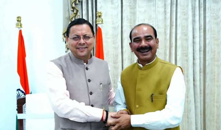 मुख्यमंत्री धामी से मुख्यमंत्री आवास में केंद्रीय राज्य मंत्री अजय टम्टा ने शिष्टाचार भेंट की