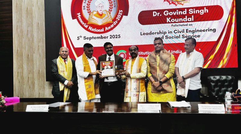 लोक निर्माण विभाग में कार्यरत सहायक अभियन्ता गोविन्द सिंह कौण्डल डॉ सर्वपल्ली राधाकृष्ण मैमोरियल नेशनल अवॉर्ड 2025 से दिल्ली में सम्मानित