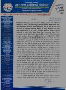 *इस सम्बन्ध में प्रान्तीय कार्यकारिणीकी की आपात बैठक में सर्वसम्मति से निर्णय लिया गया है कि जिलाधिकारी, पौड़ी गढ़वाल के द्वारा की गई कार्रवाई पूर्णतया एक तरफा, मनमानी पूर्ण एवं तानाशाही है जिसके विरोध में प्रदेश के सभी अभियन्ता दिनांक 15.09.2025 को सभी जनपदों में सम्बन्धित जिलाधिकारी के माध्यम से एवं दिनांक 16.09.2025 को मा0 विधायकों/मा0 सांसदों के माध्यम से ज्ञापन शासन/सरकार को भेजेंगे तथा काली पट्टी पहन कर कार्य करेंगे। यदि दिनांक 16.09.2025 तक निम्न मांगे पूर्ण नहीं हुई तो 17.09.2025 को प्रान्तीय कार्यकारिणी की बैठक में अग्रेतर आंदोलन पर निर्णय लिया जायेगा:-