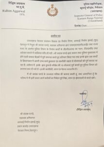 आई.जी (कुमाऊँ रेंज) और वरिष्ठ पुलिस अधीक्षक ने प्रशस्ति पत्र देकर किया सम्मानित