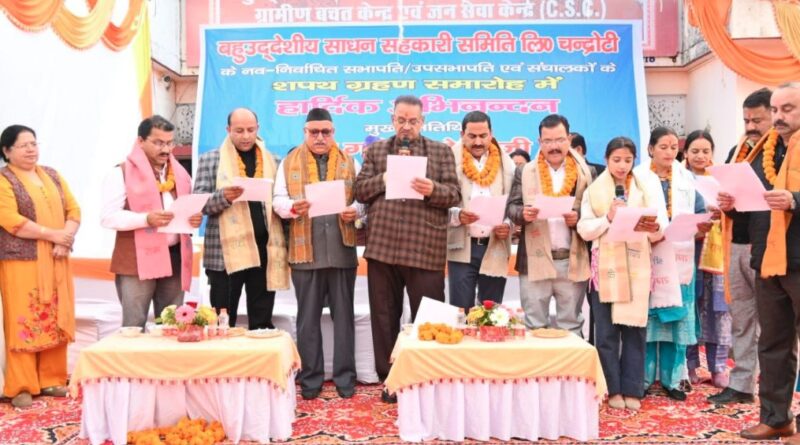 सहकारी समिति चन्द्रोटी के नव-निर्वाचित पदाधिकारियों का शपथ ग्रहण समारोह, मंत्री गणेश जोशी रहे उपस्थित