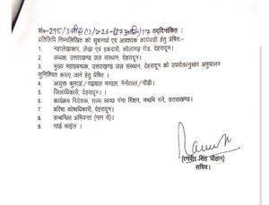 विभागीय कार्यहित में तत्काल प्रभाव से श्रीमती मोनिका वर्मा, अधिशासी अभियन्ता, सम्बद्ध कार्यक्रम निदेशक, राज्य स्वच्छ गंगा मिशन, नमामि गंगे, उत्तराखण्ड कार्यालय को उनके वर्तमान पदभार से अवमुक्त करते हुए कार्यालय मुख्य महाप्रबंधक, उत्तराखण्ड जल संस्थान, देहरादून से सम्बद्ध किया जाता है।